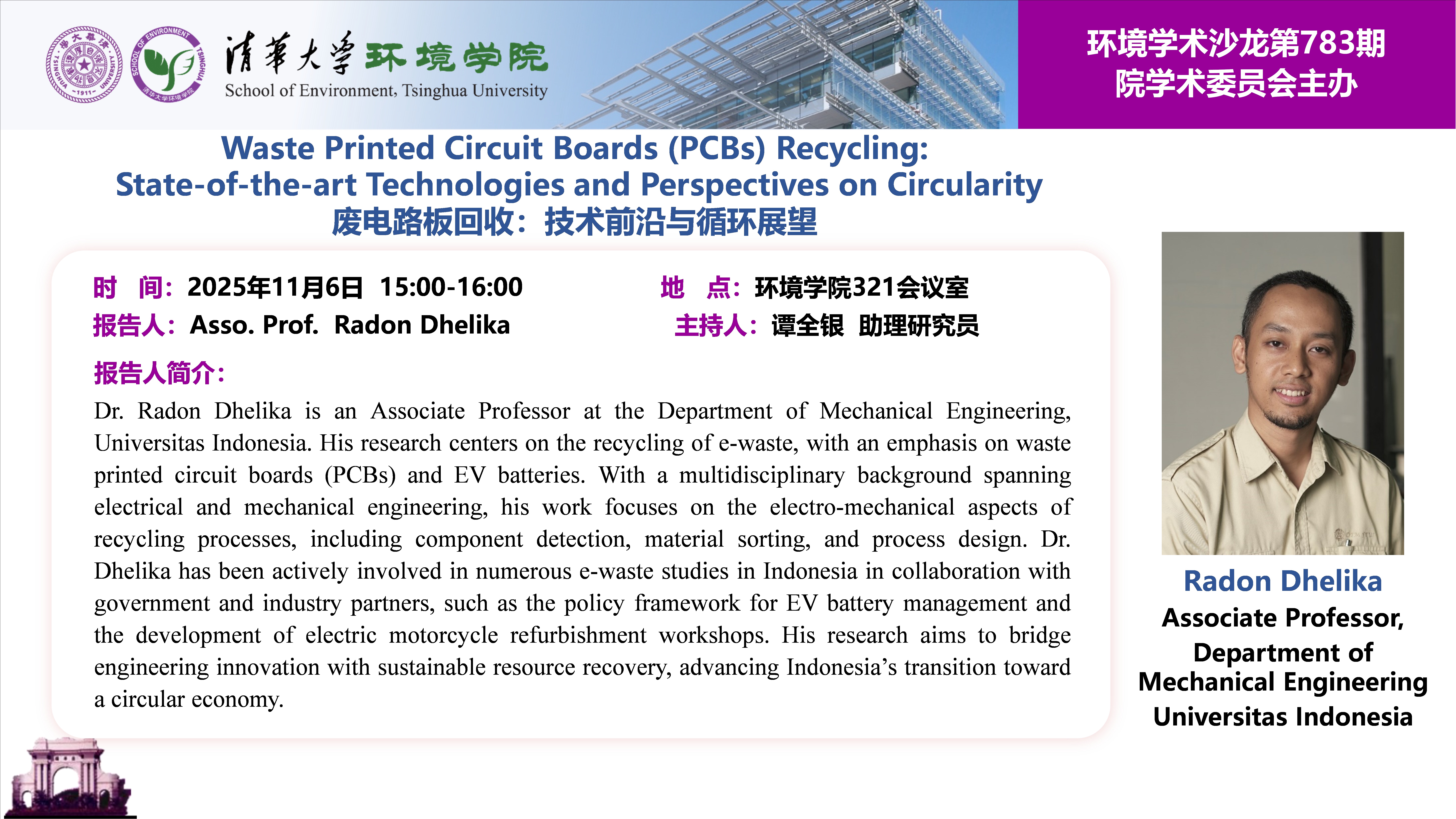 Dr. Radon Dhelika is an Associate Professor at the Department of Mechanical Engineering, Universitas Indonesia. His research centers on the recycling of e-waste, with an emphasis on waste printed circuit boards (PCBs) and EV batteries. With a multidisciplinary background spanning electrical and mechanical engineering, his work focuses on the electro-mechanical aspects of recycling processes, including component detection, material sorting, and process design. Dr. Dhelika has been actively involved in numerous e-waste studies in Indonesia in collaboration with government and industry partners, such as the policy framework for EV battery management and the development of electric motorcycle refurbishment workshops. His research aims to bridge engineering innovation with sustainable resource recovery, advancing Indonesia’s transition toward a circular economy.