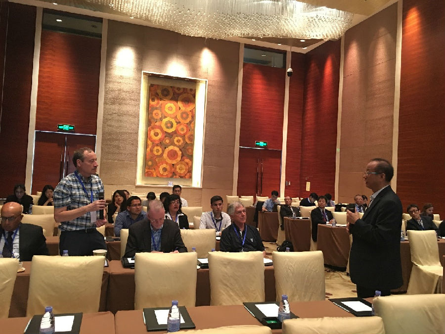 图4 胡洪营教授与ISO/TC282与会代表现场讨论(中国 深圳 2018.11)