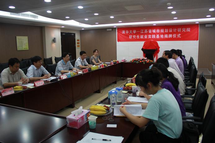 7月20日上午,清华大学研究生就业实践江苏省城市规划设计研究院基地正式成立。江苏省城市规划设计研究院(以下简称“江苏规划院”)院长邹军和清华大学环境学院党委副书记刘建国共同为江苏规划院就业实践基地揭牌。江苏规划院党委副书记张奇云、各所及相关行政部门负责人,清华大学环境学院党委研究生工作组组长孙傅以及首批在江苏规划院参加就业实践的7名环境学院研究生等近20人参加了挂牌仪式及座谈会。