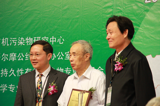 大会开幕式由中国环境科学学会POPs专业委员会主任、清华大学持久性有机污染物研究中心主任、清华大学环境学院院长余刚教授主持,哈尔滨工业大学副校长任南琪院士致欢迎词。中国环境科学学会任官平秘书长、环境保护部环境保护对外合作中心丁琼处长以及联合国环境规划署高级科学事务官员海德罗•费德勒(Heidelore Fiedler)博士分别致辞,对会议召开表示祝贺并,预祝会议圆满成功。开幕式上,我国著名环境化学家和环境毒理学家,环境保护部南京环境科学研究所蔡道基院士荣膺本年度“消除持久性有机污染物杰出贡献奖” ,旨在表彰其近三十年来在有机氯农药类POPs研究方面的突出贡献,推动了我国滴滴涕和六六六等有机氯农药类POPs的消除。