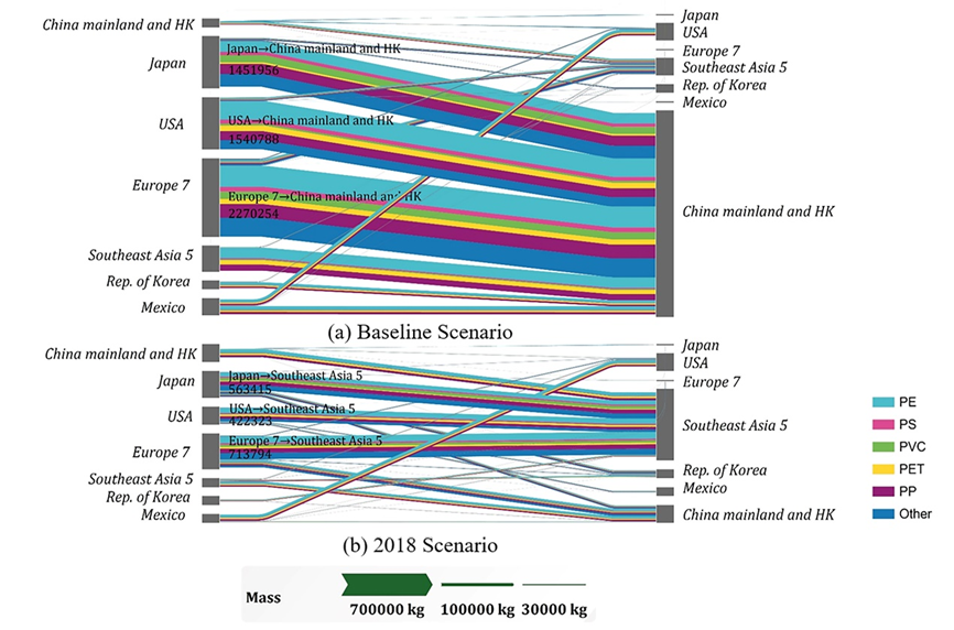 清华大学环境学院1月18日电 (通讯员 谢苡灵)1月18日,清华大学环境学院温宗国教授团队在《自然·通讯》(Nature Communications)在线发表题为《中国废塑料进口禁令减少了全球环境影响》(China's plastic import ban increases prospects of environmental impact mitigation of plastic waste trade flow worldwide)的研究论文。该研究定量化了由中国废塑料进口禁令引起的18个主要国家(地区)、6种塑料类别的贸易流动及处理模式变化所带来的环境影响及生态成本,并通过情景分析预判了出口量下降、回收率上升等长期的环境影响,为未来提高国际废塑料贸易的环境可持续性指明了方向。