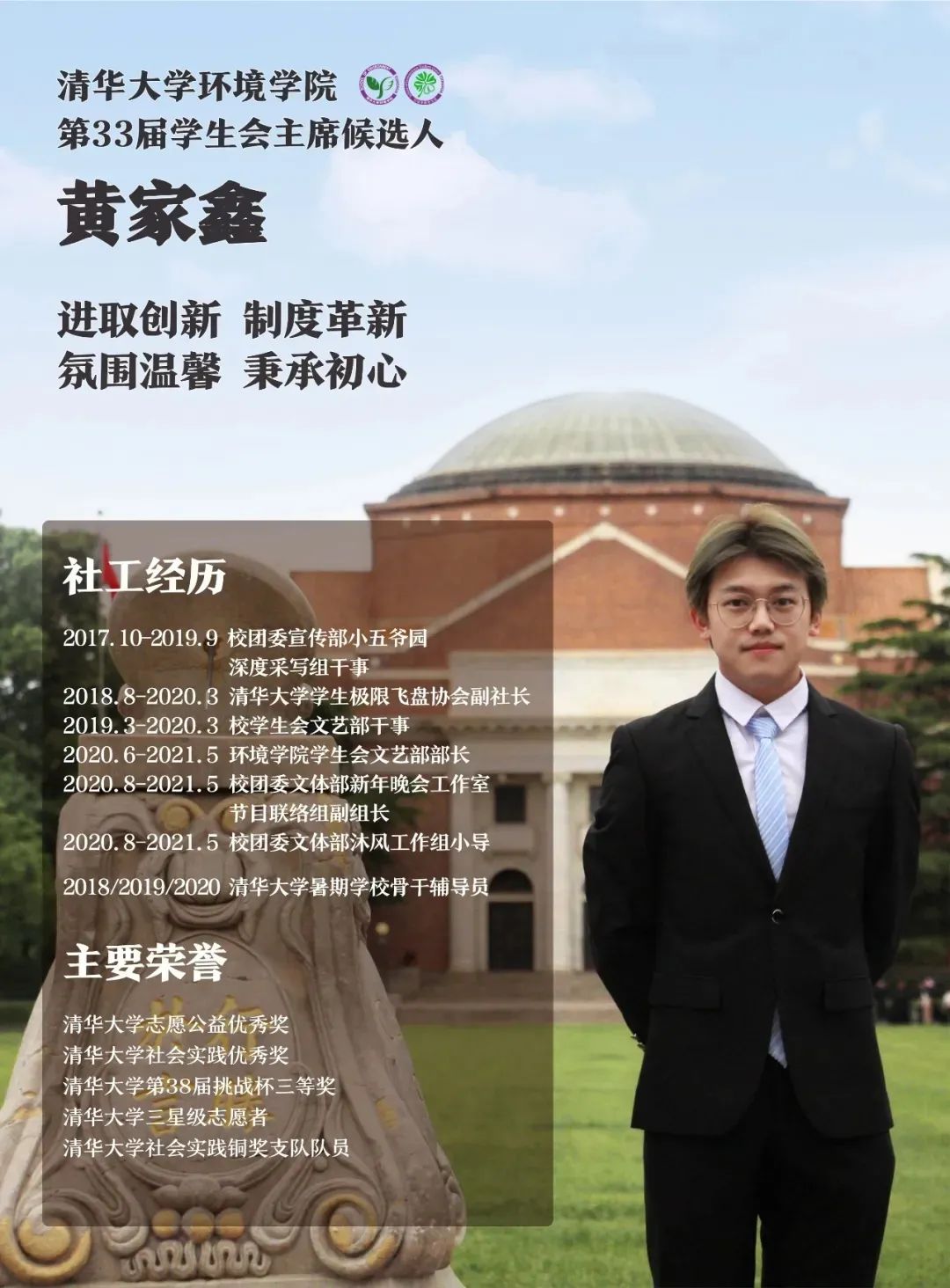 此外,秉承着“服务同学,提升自我”的初心,黄家鑫也在校团委和学院担任重要社工岗位,表现出较强的组织、沟通和领导能力;现任环境学院学生会主席,“进取创新、制度革新、氛围温馨、秉承初心”是他竞选学生会主席的理念。