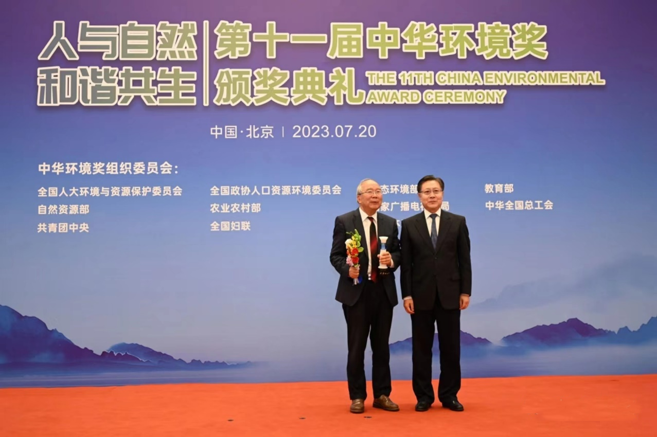 清华大学环境学院2023年7月31日电(通讯员 廖梓童)7月20日,第十一届中华环境奖颁奖典礼在北京人民大会堂隆重举行,清华大学环境学院郝吉明院士荣获第十一届中华环境奖。颁奖词为:科研领航,问道苍穹,护卫蓝天常在。一片冰心,直道而行,筑梦三尺讲台。你推动空气质量改善,强科研,育人才,以治学立身。你坚守祖国环保事业,振长策,击长空,诵君子清芬。